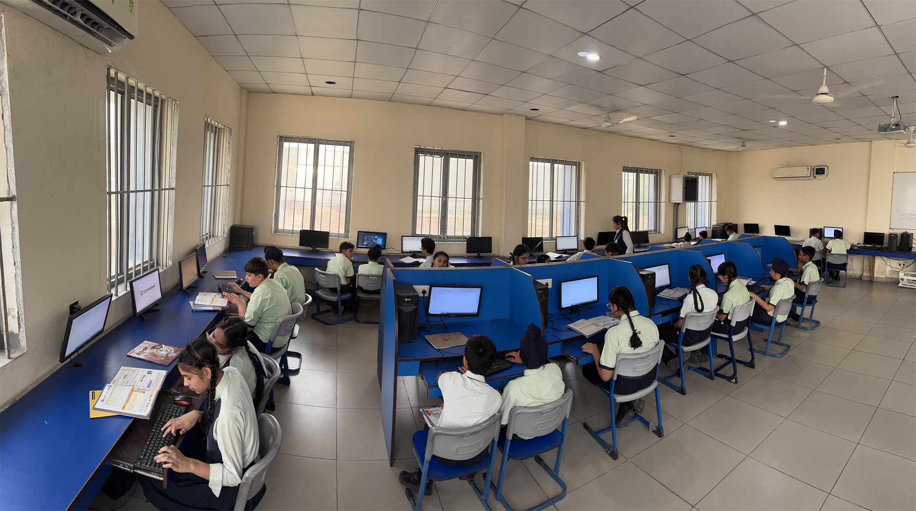 Our school boasts two spacious and modern computer labs equipped with the latest operating systems and advanced software. Students are gradually introduced to the basics of computing, progressing toward advanced technologies under the guidance of highly skilled, tech-savvy faculty. In today’s fast-evolving technological world, exposing children to the latest advancements in Information Technology is crucial. This exposure not only keeps them updated but also helps them develop essential skills for specialised studies and future opportunities.