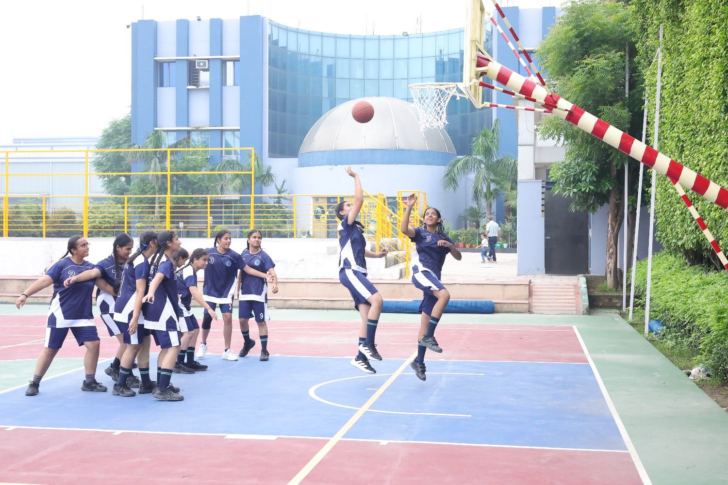 Sports Facilities: A newly built indoor badminton court, skating rink, lawn tennis court, basketball court and dedicated spaces for athletics ensure physical fitness and sportsmanship.