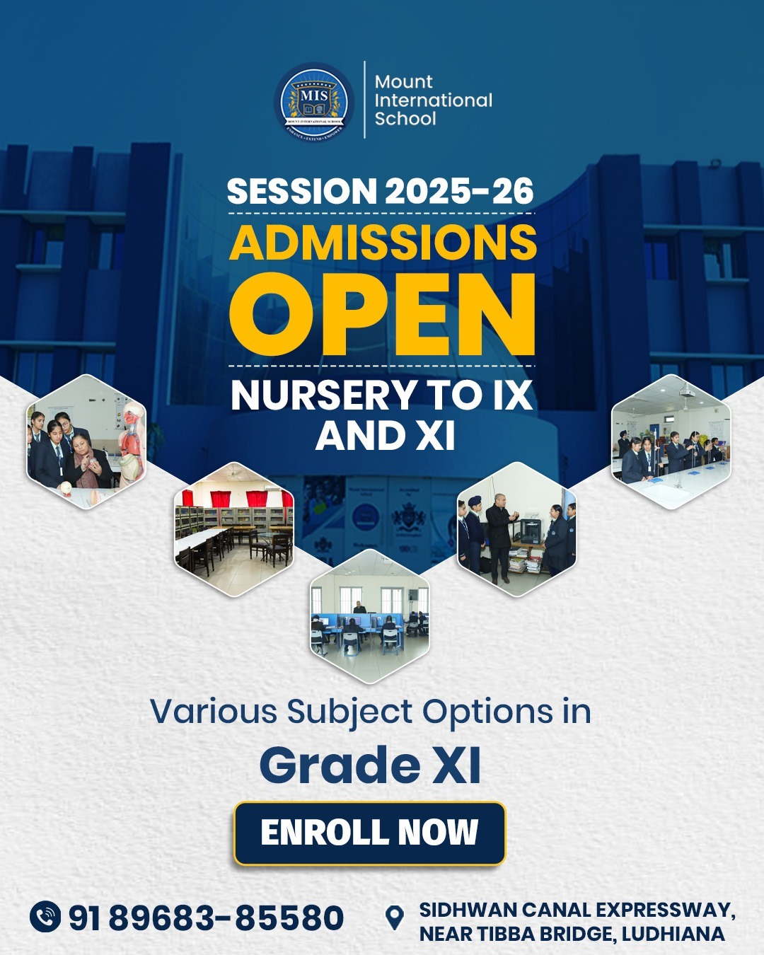 Mount International School (MIS), an English medium co-educational institute in Ludhiana, Punjab, has quickly established itself as a premier institution under the flagship of the Lala Megh Raj Educational Society. Since its inception in 2015, MIS has been committed to nurturing young learners as future global citizens. The school offers a dynamic and progressive environment, responsive to the evolving world, to foster self-awareness, lifelong learning, and intellectual growth. Following a curriculum affiliated with CBSE, New Delhi, MIS provides a balanced, innovative education rooted in strong pedagogical principles to unlock each child’s unique potential and prepare them to thrive in the 21st century.