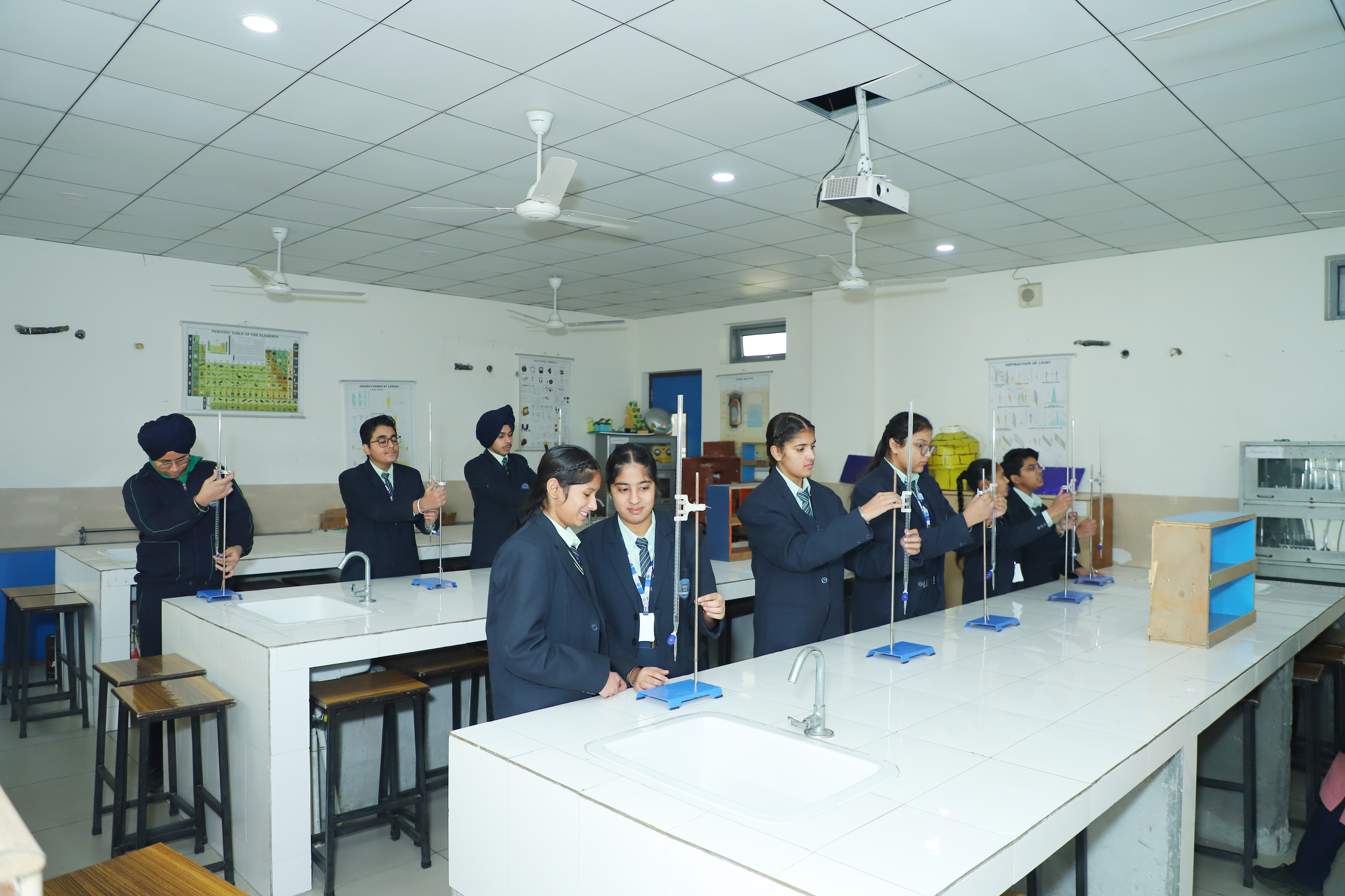 Our lab includes all the necessary apparatus and chemicals for conducting experiments safely. Students explore chemical reactions, learn about compounds, and perform titrations and other experiments to reinforce their theoretical knowledge. Safety protocols are strictly adhered to, ensuring a secure environment for young scientists.